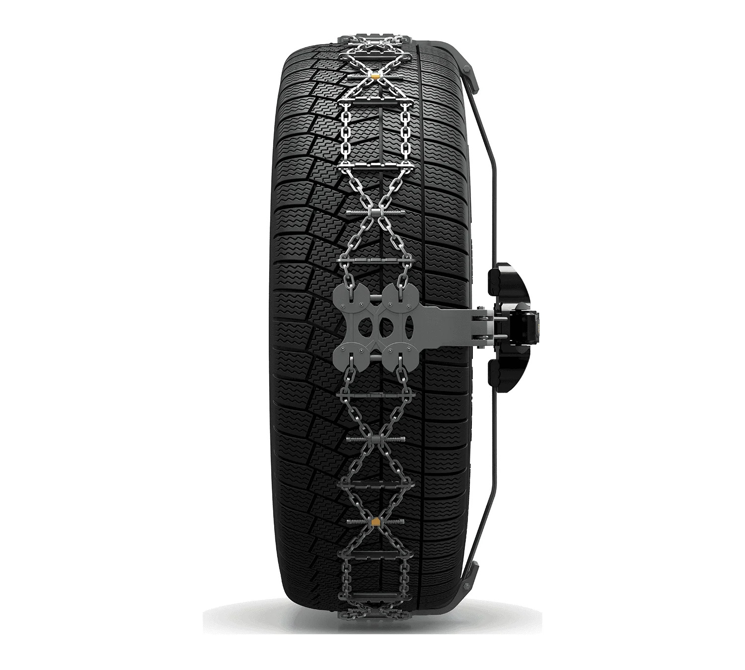 Quando il basso è meglio dell’alto. Questa tecnologia definisce un mix di soluzioni tecniche volte a ridurre la portanza dinamica della catena da neve e a consentire l’applicazione su passaruota bassi.