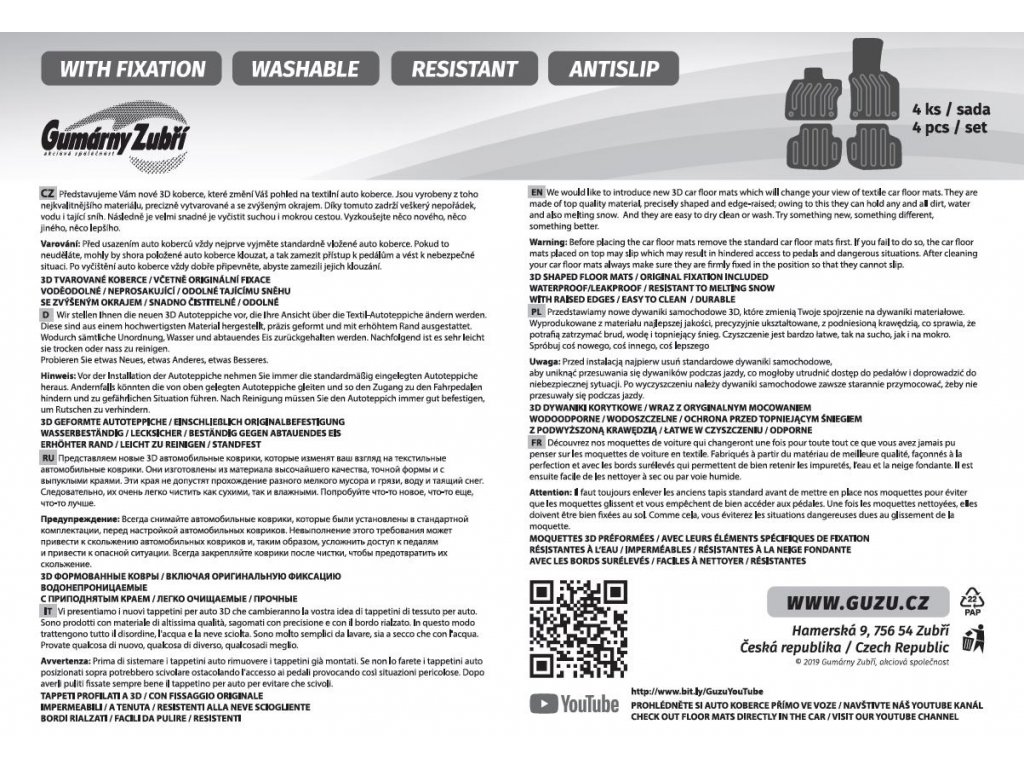 Vi presentiamo i nuovi tappeti 3D in moquette, che cambieranno la vostra visione dei tappeti per auto. Sono realizzati con materiali di altissima qualità, sagomati con precisione e con un bordo rialzato. Grazie a questo tutto lo sporco, l'acqua e la neve che si scioglie vengono trattenuti. Successivamente sono molto facili da pulire sia da asciutti che da bagnati. Prova qualcosa di nuovo, qualcos'altro, qualcosa di meglio.
