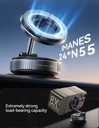 Innovativo sistema Dual-Lock: combina l'adsorbimento magnetico MagSafe con una base a ventosa meccanica, offrendo compatibilità universale e stabilità assoluta.
