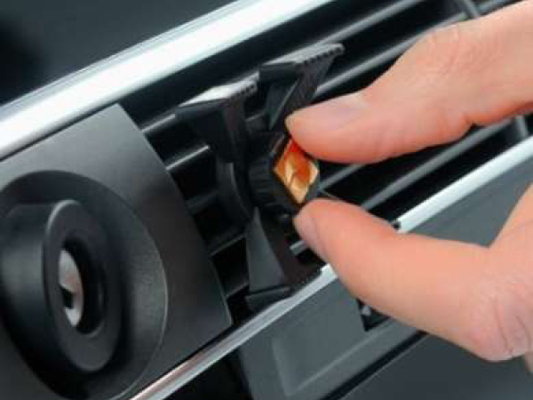 Accessorio utile da incollare sul cruscotto, da utilizzare in qualsiasi luogo si desideri o sull'aletta di una presa d'aria.