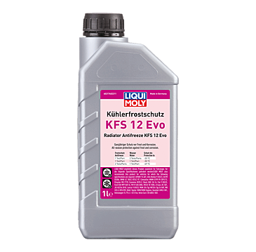 Pulire l'impianto di raffreddamento con il detergente per radiatore LIQUI MOLY (N. art. 3320). Quindi svuotare e sciacquare con una quantità sufficiente di acqua. Aggiungere antigelo per radiatore KFS 12 Evo e acqua secondo la tabella per la miscelazione e le indicazioni del costruttore. Consigliamo allo scopo acqua distillata. A seconda della durezza dell'acqua e della qualità è possibile anche una diluizione con acqua di rubinetto. Smaltimento conforme alle disposizioni locali. Intervallo di cambio secondo quanto prescritto dal costruttore. Conservare solo in stato non diluito. Miscibile con liquidi di raffreddamento a base di glicole etilenico.