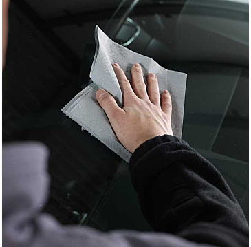 1. Pulire e asciugare prima il cristallo con della schiuma detergente per cristalli. Se durante il lavaggio del veicolo è stata applicata una cera sigillante, rimuoverla con un rimuovi silicone e cera.